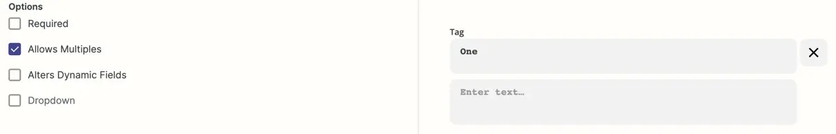 - Select Allows Multiples checkbox if you want users to add multiple enteries into the same input field.