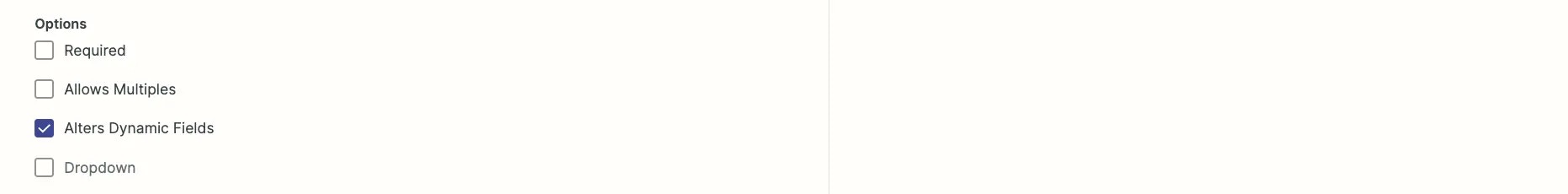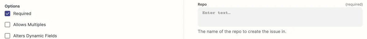 For each dynamic field in your integration, Zapier runs code to decide whether to show a field or what to show in a field. Check the Alters Dynamic Fields option, to have Zapier automatically recompute any dynamic fields in your Zapier integration anytime this field is changed. Do not check the Alters Dynamic Fields option unless the field is needed for your integrations’ dynamic fields.