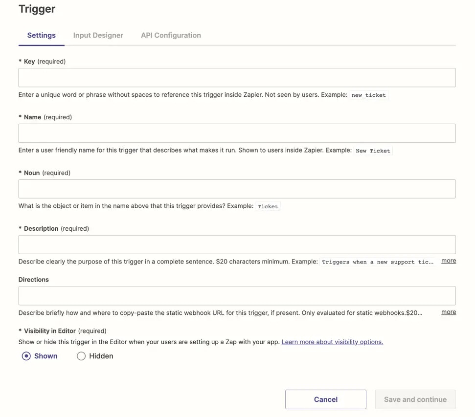This trigger type periodically checks the provided API endpoint for new or updated data. The update time or frequency of polling occurs per active Zap every 1 to 15 minutes, depending on the user’s Zapier plan level. The API endpoint must list new or updated items in an array sorted in reverse chronological order. These are typically the most common API endpoints to read data from a platform. For new item triggers, the endpoint should list newly created items first; while for updated item triggers, recency of update is preferred. If your API lists items in a different order by default, but allows for sorting, include an order or sorting field in your API call to ensure newest records are returned on the first page of results. Include details in your trigger description to let users know which type of updates will run the trigger. Zapier automatically deduplicates incoming polling trigger data, so that Zaps do not run multiple times on the same data. Known as deduplication, this is explained to users as a concept. Ensure your polling triggers behave as users expect by following deduplication guidelines for new item and updated item triggers.2. REST Hook trigger