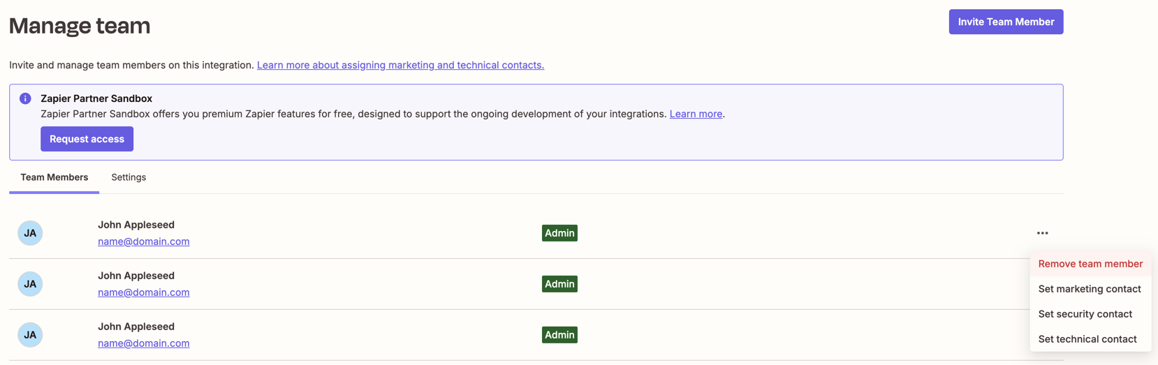 If you want to ensure that your team members receive partner marketing emails:- Invite your team members to the integration team as either an Admin or Collaborator and ensure they accept the invite.