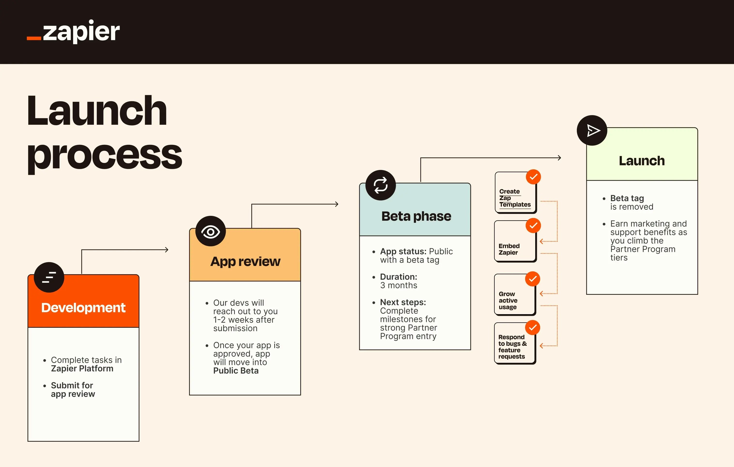 - You’ll get support from Zapier’s Partner Program once your app has been successfully reviewed.
